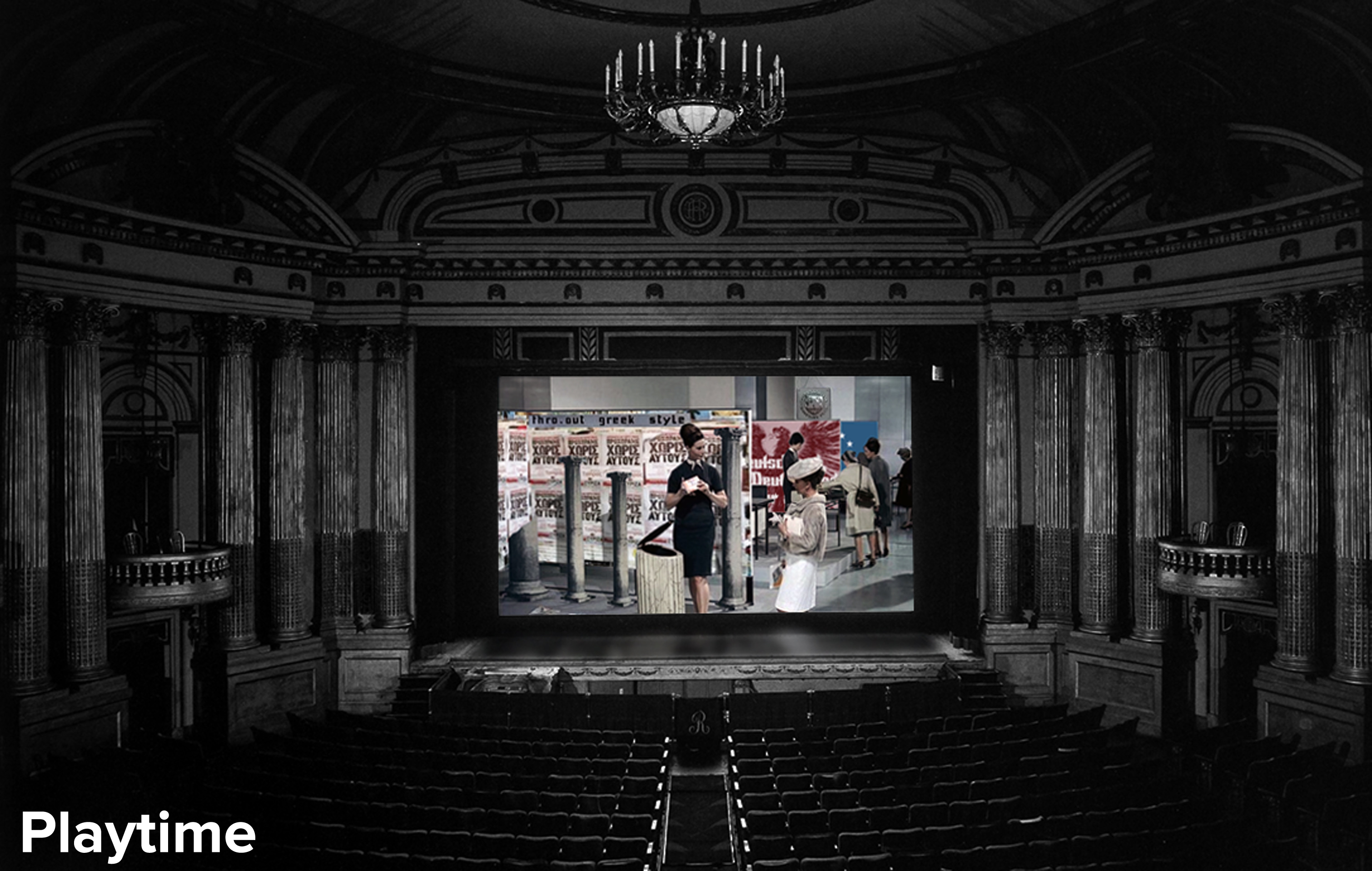 Em determinado momento da trama, presos no salão de demonstrações Strand, em que se visionam futuros produtos, colunas Gregas são transformadas em caixotes de lixo, tudo em nome de um adorno clássico de conformismo e aceitação pelo belo em vez do real.